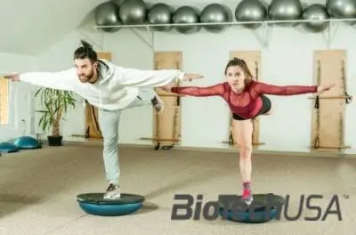 A koordinációs félgömb eszköz számos hasznos gyakorlathoz használható. Egyik oldala félgömb alakú, másik oldala merev, sík. Nem csak izomerősítés céljából hasznos, de remekül fejleszti a koordinációt akár ugrásokkal kombinálva is. Most a félgömb oldala néz a talaj felé és a lapos oldala felfelé. Egyik lábbal ráállunk a koordinációs félgömb sík felületére, majd az egyensúlyunk megtartása mellett emeljük hátra a másik lábunkat és döntjük a törzsünket előre. A törzs és az emelkedő láb végig egy vonalban maradjanak, majd miután a vízszintes pozíciót elértük egyenesedjünk fel és jöhet a következő ismétlés. Remekül erősíti a combhajlítókat és a farizmokat, dolgozik a vádli is és a törzs izmai. Haladókkal kiegészítésként labdagyakorlatokat is végeztethetünk.